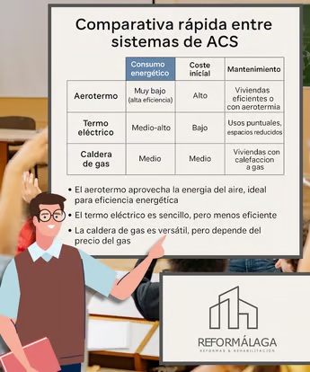 Comparamos tres sistemas de generación de Agua Caliente Sanitaria (ACS): aerotermo, termo eléctrico y caldera de gas. Analizamos sus ventajas, consumo y usos recomendados para ayudarte a elegir la opción más adecuada según tu tipo de vivienda y necesidades.